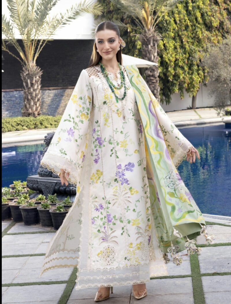 - Printed And Lace Embroidered Lawn Front Center Panel.