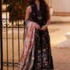 The look is completed with a printed dupatta adorned with layered motifs and tonal variations. Its fluid drape and intricate pattern play complement the embroidery perfectly, adding movement and visual interest to the ensemble.