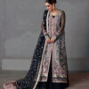 Stella dazzles in a majestic navy blue hue, adorned with intricate sequins waves that sparkle with every movement. A soft pink satin hem border adds a touch of vibrancy. The dupatta features embroidery in soft pink, coral, and lime shades, elegantly complemented by sparkling diamantes spray for added opulence, addition to it is a satin four sides border that make it culminating in a look that exudes timeless elegance and make it.